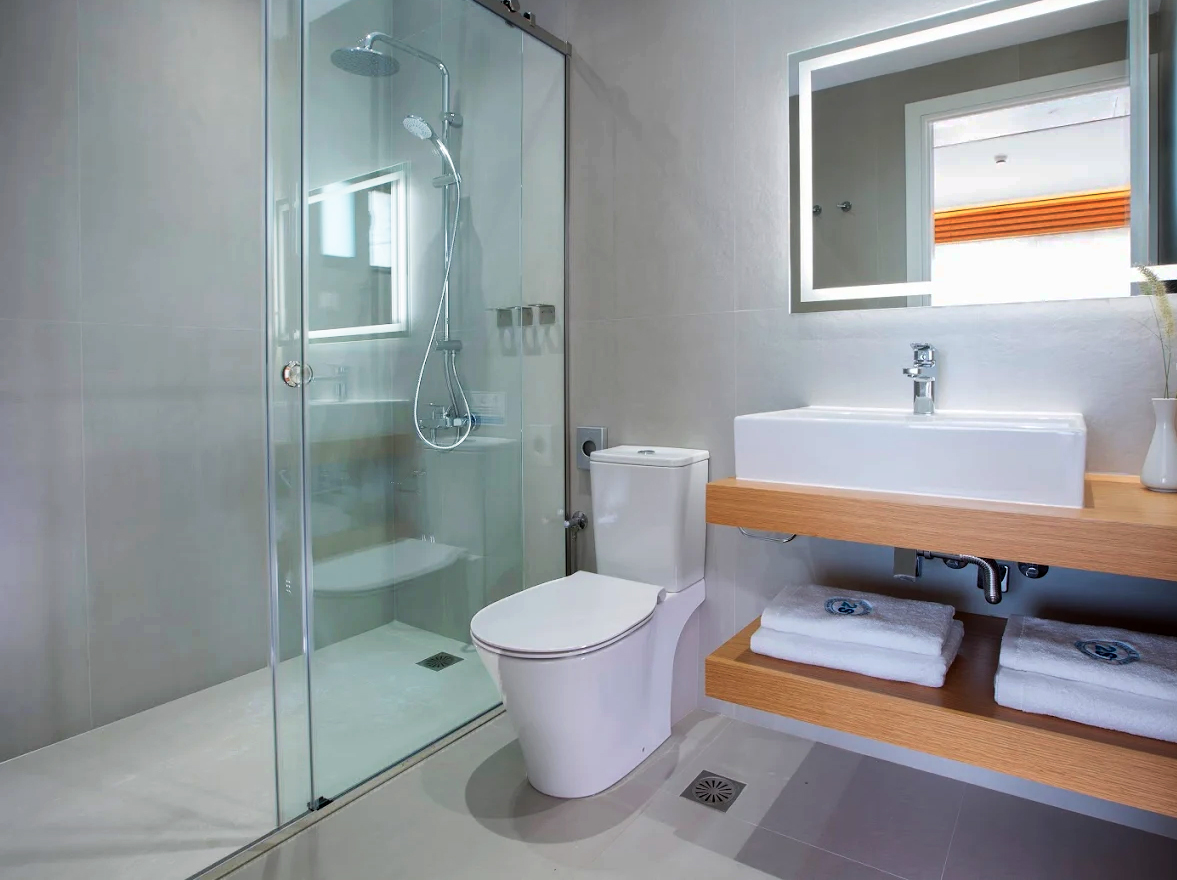 The villa offers two spacious bedrooms, with king-size beds and each having its own en-suite bathroom with shower. Elegant oak flooring runs throughout, while modern furnishings and premium mattresses ensure complete comfort.