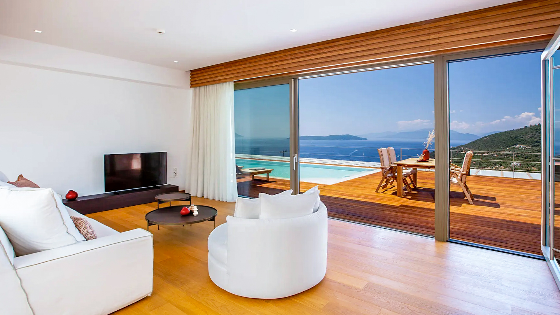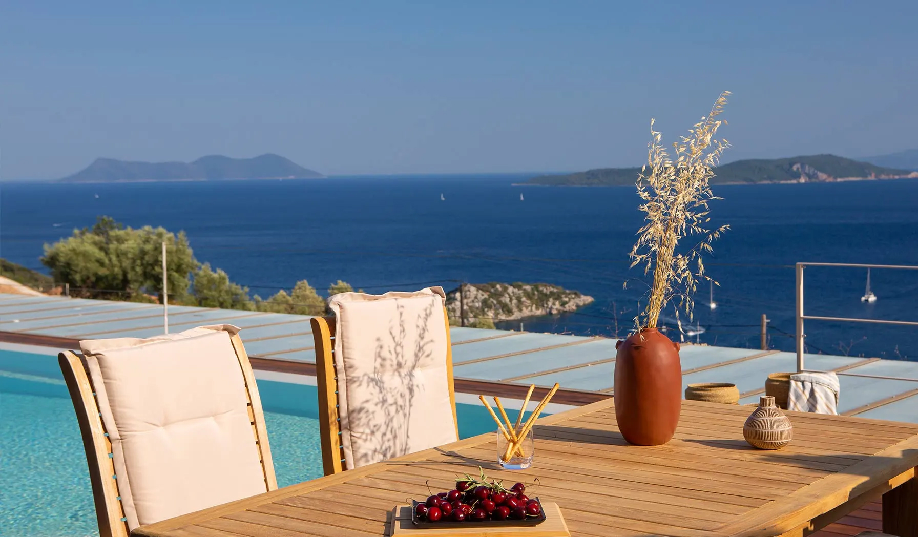 Luxury is always discreet and Villa Sigma, embedded discreetly into the lush green mountainside of Sivota Bay on the Ionian Island of Lefkada proudly is a new addition to our Exclusive Greek Villa Collection. Villa Sigma’s prime position gives you views into the cosmopolitan summer lifestyle every evening of yachts moored alongside the seaside taverns and every morning with your Greek coffee slow living gorgeous view of yachts gliding away to explore sparkling and sun kissed blue of the Ionian Archipelagos.