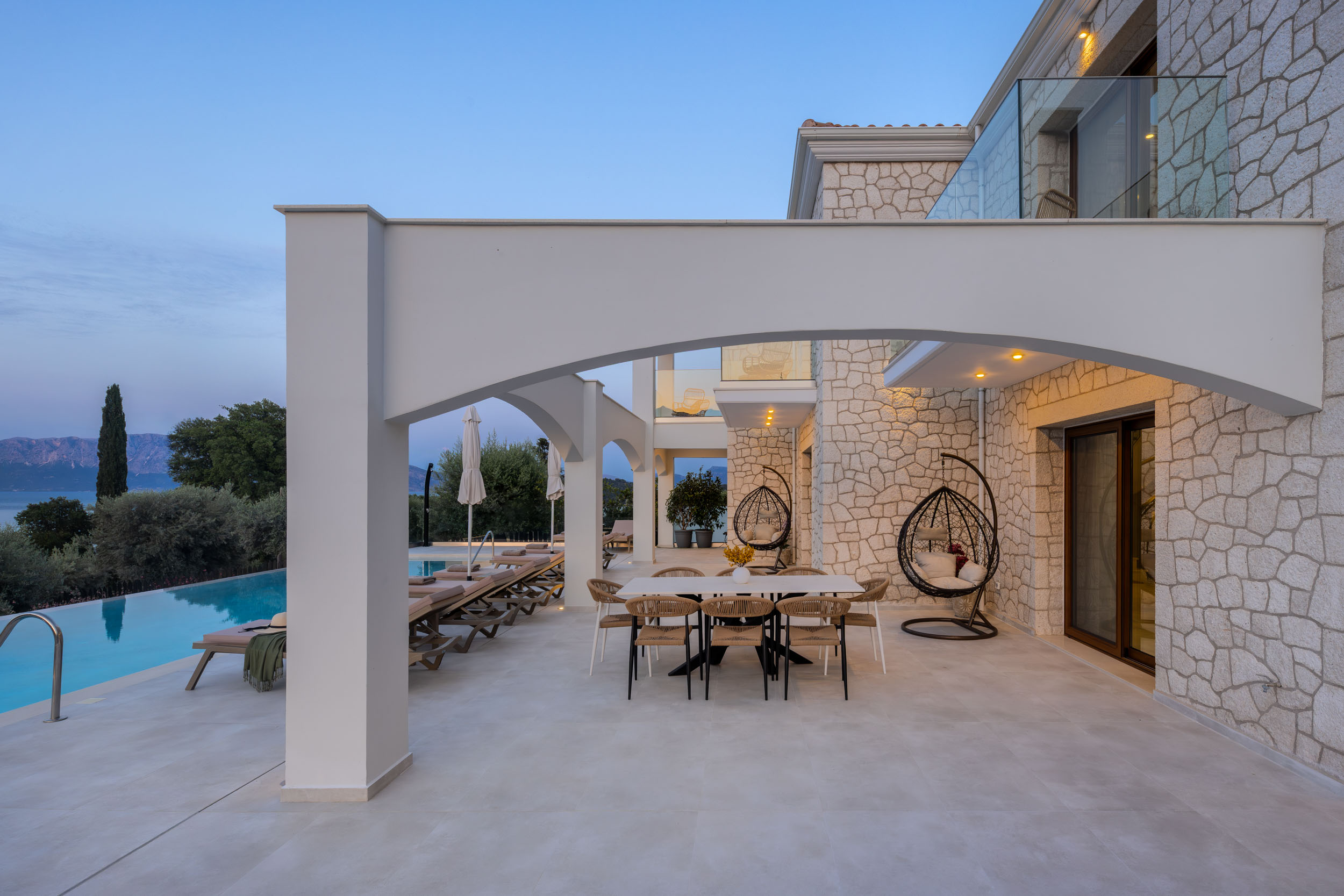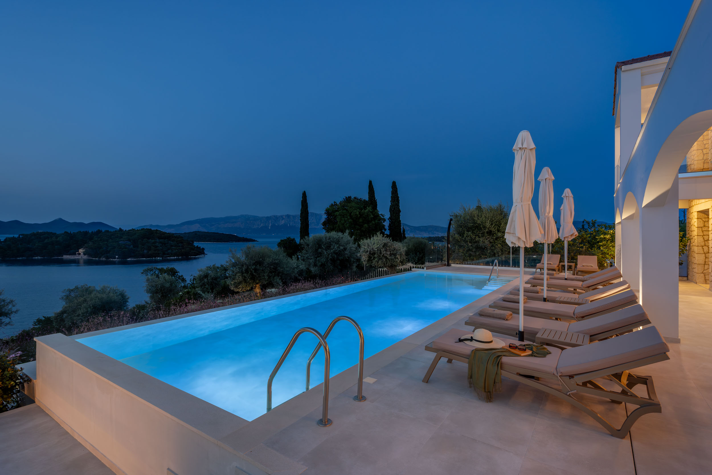 Located on the lush green mountainside and engulfed naturally amongst the olive groves of Geni Bay is our brand new, Villa Unique. This private property oozes calmness and its design blends naturally with its surrounding environment. Floor-to-ceiling glass doors flood the interiors with natural light creating a Greek Luxury Villa Holiday experience like no other. Let’s not forget alfresco life across every corner of the private outdoor area gives you endless Ionian Sea views but the exclusive privilege of overlooking the stunning islets of Marouri and the infamous, Scorpios.